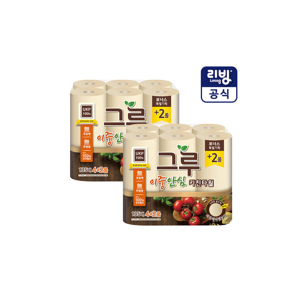 그루 이중안심 키친타올 3겹 135매 6롤 X 2팩