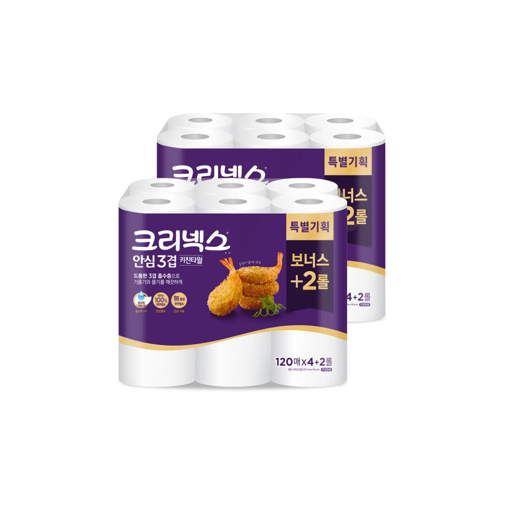 크리넥스 안심 키친타올 3겹 120매 6롤 X 2팩