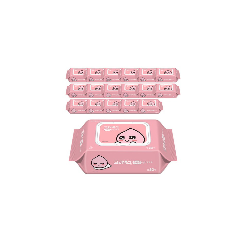 크리넥스 수앤수 실키소프트 카카오 어피치 물티슈 캡형, 80매, 18개 > 생활용품│기타용품