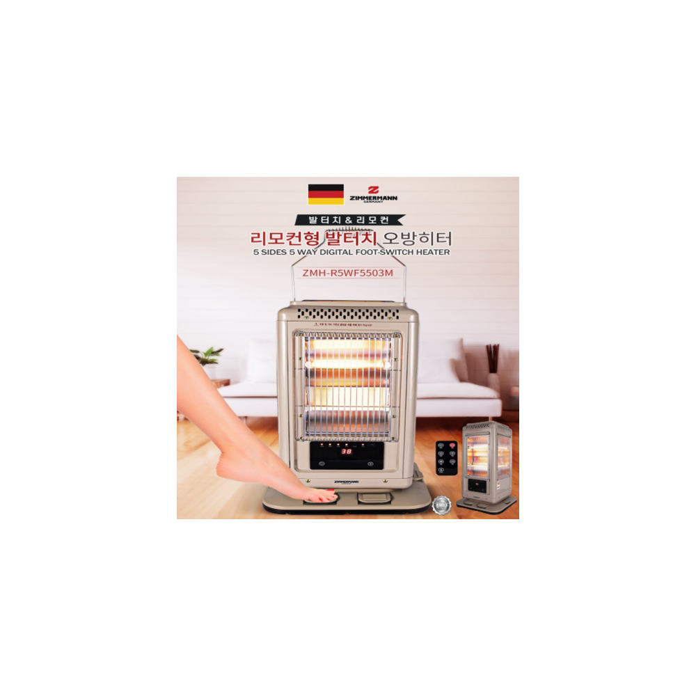 짐머만 리모컨형 발터치 오방히터ZMH-R5WF5503M난방 실내 > 건강가전│계절가전